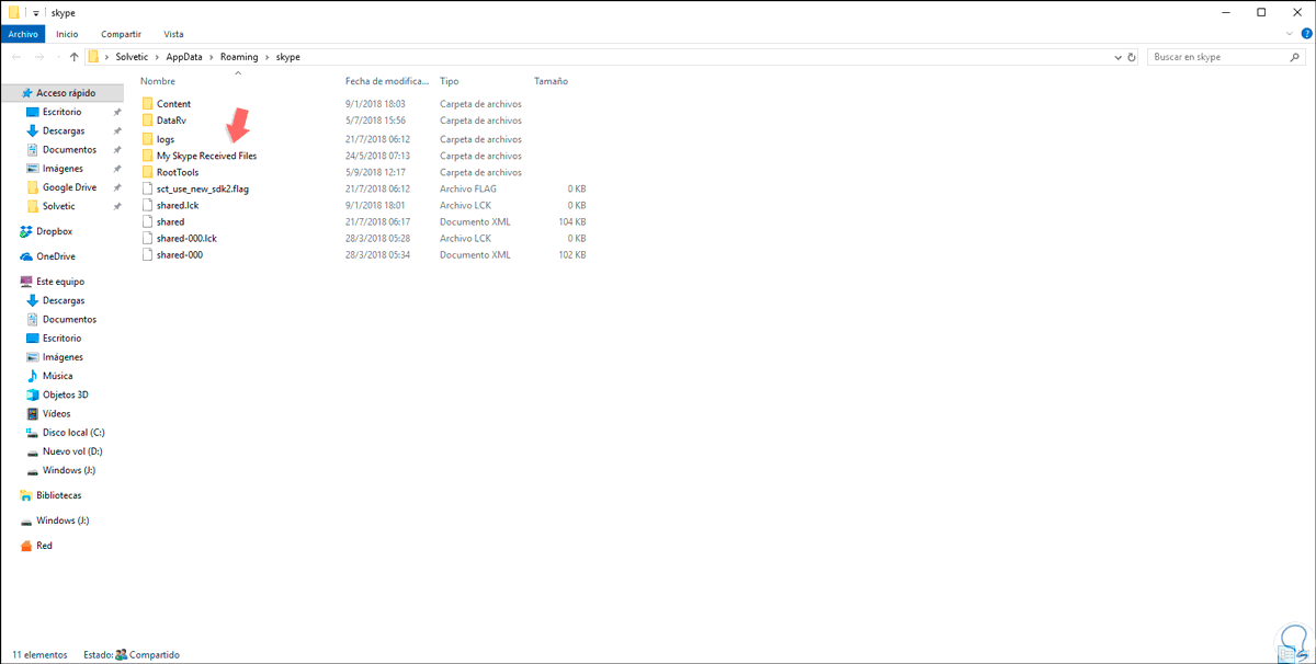 Se desplegará la siguiente ventana. Allí debemos copiar las carpetas “My Skype Received Files” y la carpeta con del nombre de usuario a otra ubicación como respaldo.