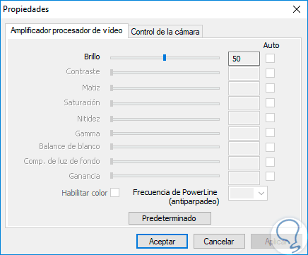 Allí podemos determinar si Skype reconoce la cámara web, si es así veremos el nombre de la misma en la parte superior, en caso de que esté activa podemos dar clic en la línea “Configuración de la cámara web” y en la ventana emergente validar cada parámetro: