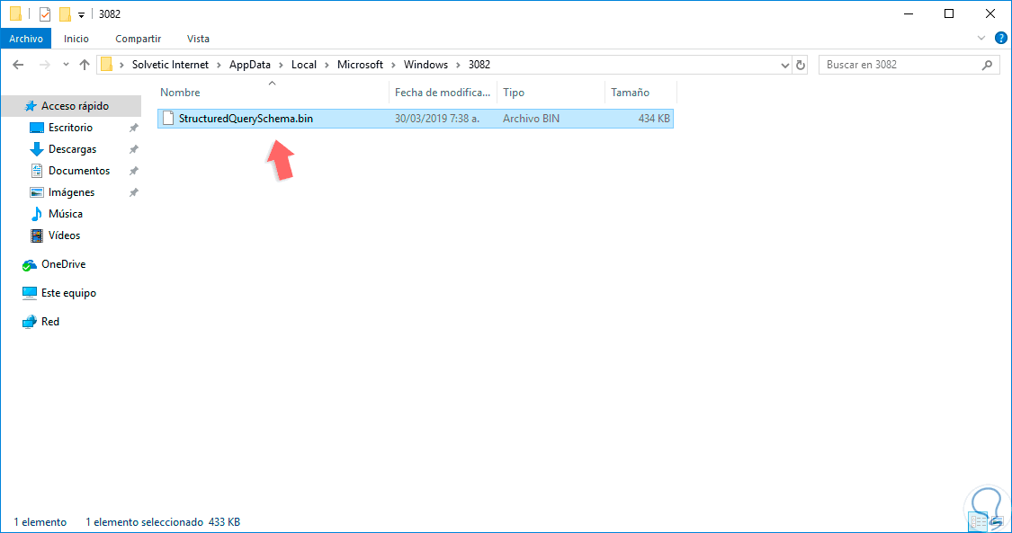 13. Eliminar el archivo StructuredQuerySchema.bin en Windows 10