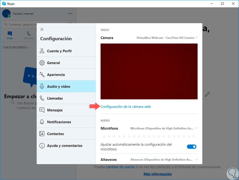 2. Comprobar el funcionamiento de la cámara web en Skype