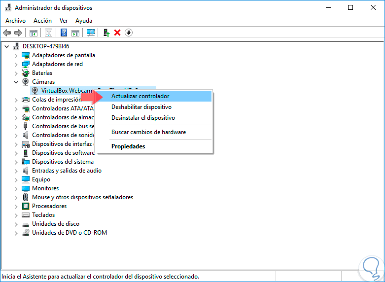 Allí ubicaremos la sección “Cámara”, damos clic derecho sobre el controlador y seleccionamos la opción “Actualizar controlador”: