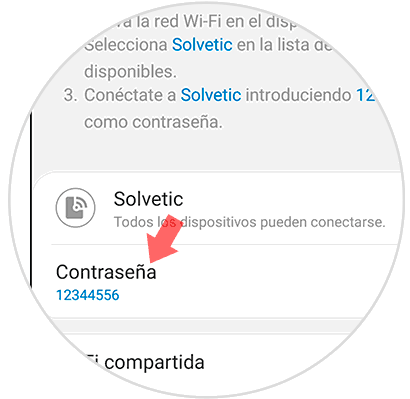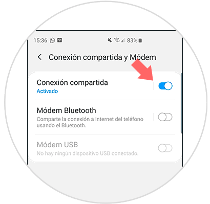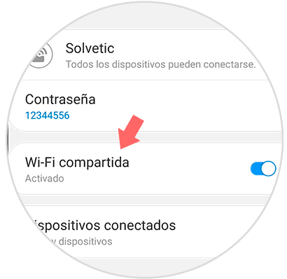 Debes de pulsar sobre la opción de “Conexión compartida” unos segundos para que te lleve a la categoría en sí.