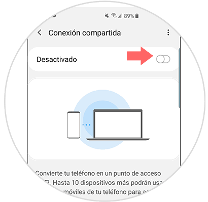 De esta forma habremos deshabilitado o activado la conexión compartida de Internet desde nuestro Galaxy S10.