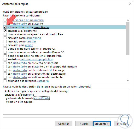 Damos clic en Siguiente y ahora será posible activar las casillas que deben ser aplicadas al filtrado: