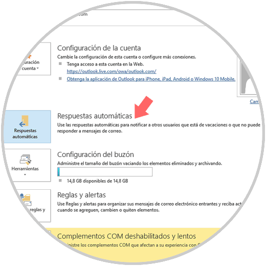 2. Cómo crear un mensaje de vacaciones en las cuentas POP e IMAP de Outlook 2019