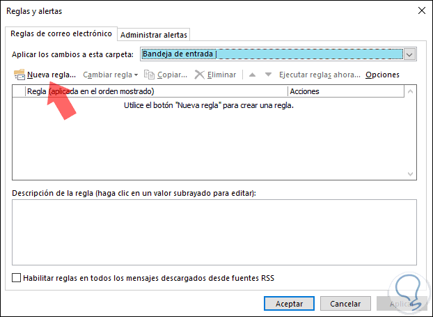 En el asistente desplegado, vamos a la opción “Nueva regla” ubicada en la parte superior: