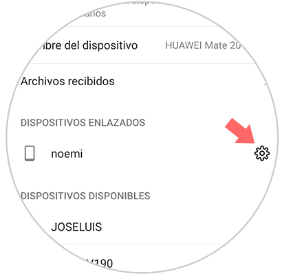 Se deben repetir los pasos 1 y 2 del procedimiento anterior hasta llegar a la opción "Dispositivos enlazados" justo al lado derecho de este apartado se encuentra un icono que asemeja una rueda dentada, debemos presionar allí.