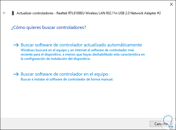 Disponemos de dos opciones para actualizar el controlador de red inalámbrica: