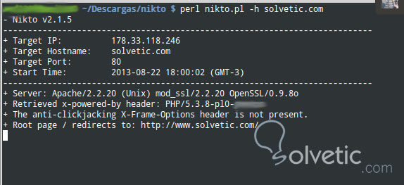 tar -xvf nikto-2.1.5.tar.bz2Tan sólo debemos entrar en el directorio creado y ejecutar la aplicación nikto.pl mas los parámetros necesarios.
