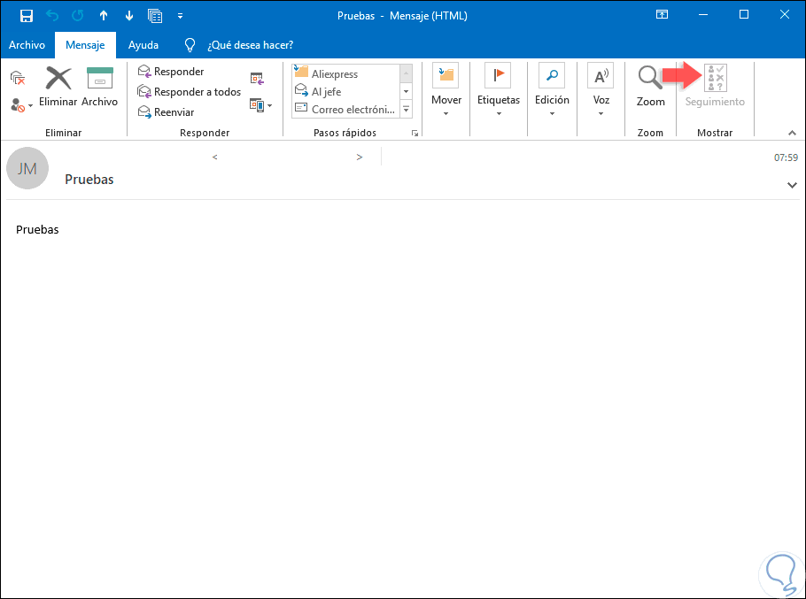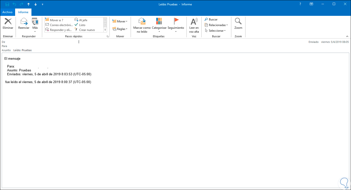 2. Cómo poner confirmación de lectura en un solo mensaje de correo en Outlook 2019, 2016