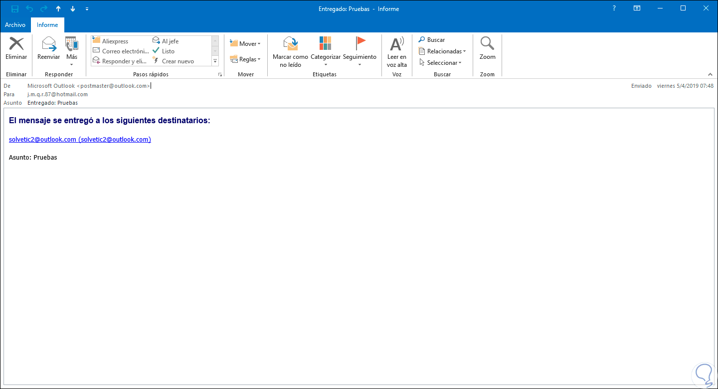 Solvetic te explicará cómo lograr esto de una forma simple y así averiguar si los correos electrónicos de Outlook que enviamos han sido leídos o no por el destinatario y de esta forma despejar cualquier duda.