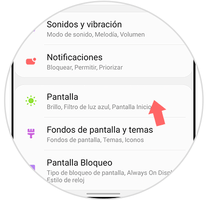 Posteriormente, se abrirá una lista de apartados de los cuales debemos escoger el que lleva por nombre “Pantalla”