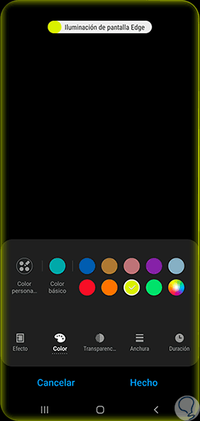Para continuar, presionamos sobre el apartado “Iluminación de pantalla Edge” para que se muestra un directorio con una gama de opciones entre las que se encuentra: