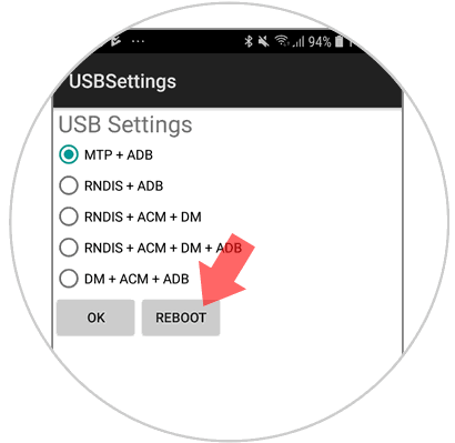 Para finalizar, podrás ver nuevo panel de alternativas. Entre todas ellas tienes que seleccionar una que lleva el nombre de “MTP+ADB”, y luego presiona la opción de “Reboot” que ahí aparece.