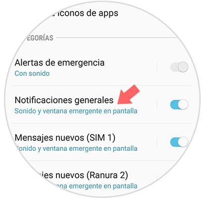 Ahora, tienes que proceder a acceder a la sección de “Categorías”, y luego deslizar la barra que se encuentra en la pestaña de “Notificaciones generales” hacia la derecha del mismo.