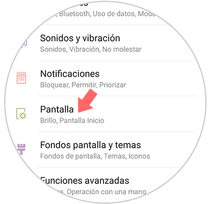 Observarás que hay diferentes opciones de configuración a escoger, y entre todas ellas tienes que presionar sobre la que dice “Pantalla”, que localizaras deslizándote hacia abajo en dicho menú. Pulsa aquí.