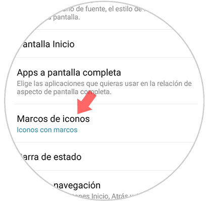 Ante esto, se te abrirá una nueva ventana, en donde se mostrarán diferentes configuraciones referentes a dicha sección del teléfono móvil. En la misma tienes que proceder a dale click sobre la opción de “Marcos de iconos”.