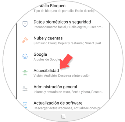 Se desplegará una ventana emergente con varias alternativas, presionamos en “Accesibilidad” .