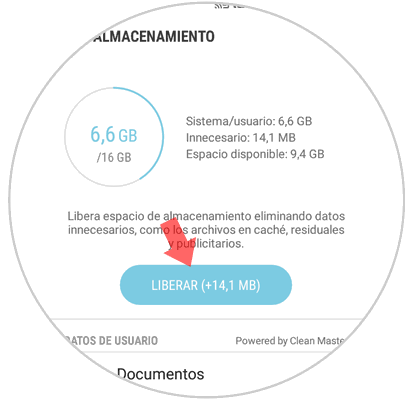Ahora, verás que habrá una opción que dice “Liberar”, esta es la que debes presionar para que se elimine el caché de las Apps y puedan funcionar correctamente.