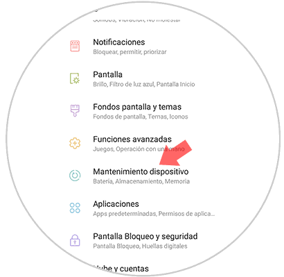 Como paso siguiente, debes entrar a la opción de “Mantenimiento dispositivo” que se encuentra en la parte media del panel donde te encontrarás.