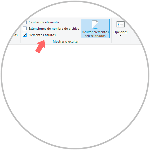 Por defecto la ruta de esta carpeta es C:\ProgramData y para visualizarla, debemos ir al Explorador de archivos de Windows 10 y en el menú Vista ir al grupo Mostrar u ocultar y allí activar la casilla “Elementos ocultos”: