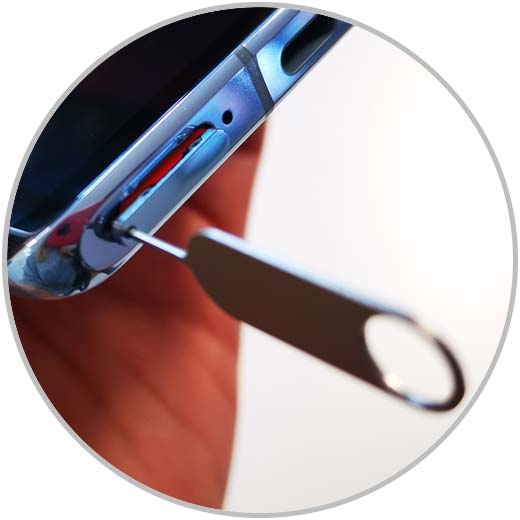 a continuación, debes buscar un agujero en la parte lateral del dispositivo, y cuando lo encuentres tienes que colocar la llave en él y realizar un poco de presión hasta que suene “Click”.