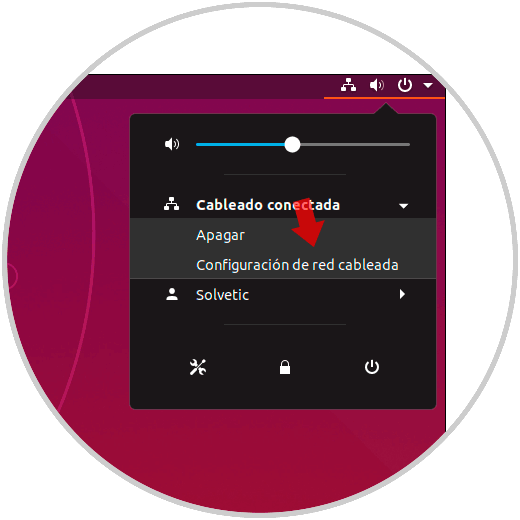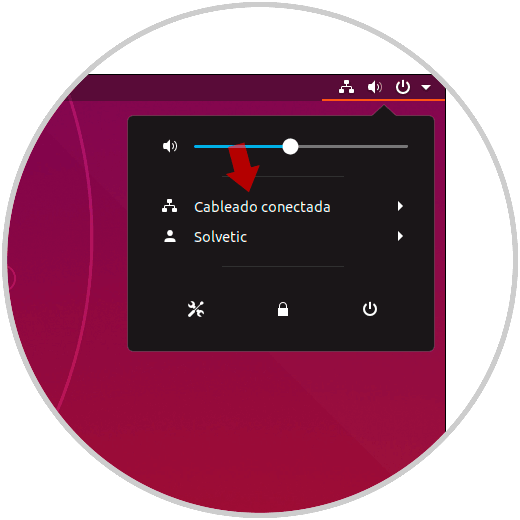 Para iniciar este proceso accederemos a la configuración de red directamente desde el menú superior de Ubuntu: