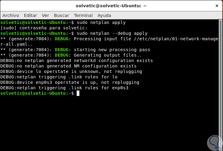 Ahora para aplicar los cambios en la red vamos a ejecutar lo siguiente: