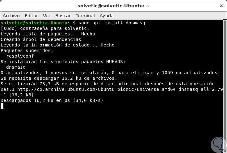 Ahora bien, si eres de los usuarios curiosos que desea trabajar con la terminal Solvetic tiene una sorpresa para ti, esta es que podemos realizar este cambio directamente desde la consola, para ello accedemos a la terminal y allí ejecutamos la siguiente línea: