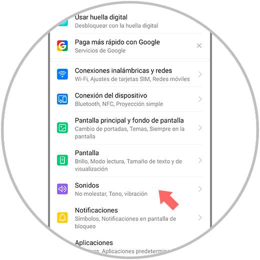 Como podrás observar, se te mostrarán varias alternativas a escoger. Entre todas ellas tienes que proceder a elegir la que lleva el nombre de “Sonidos”.