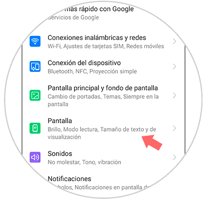 A continuación, se muestran todas las opciones de configuración que posee el equipo, debemos presionar sobre el apartado “Pantalla”.