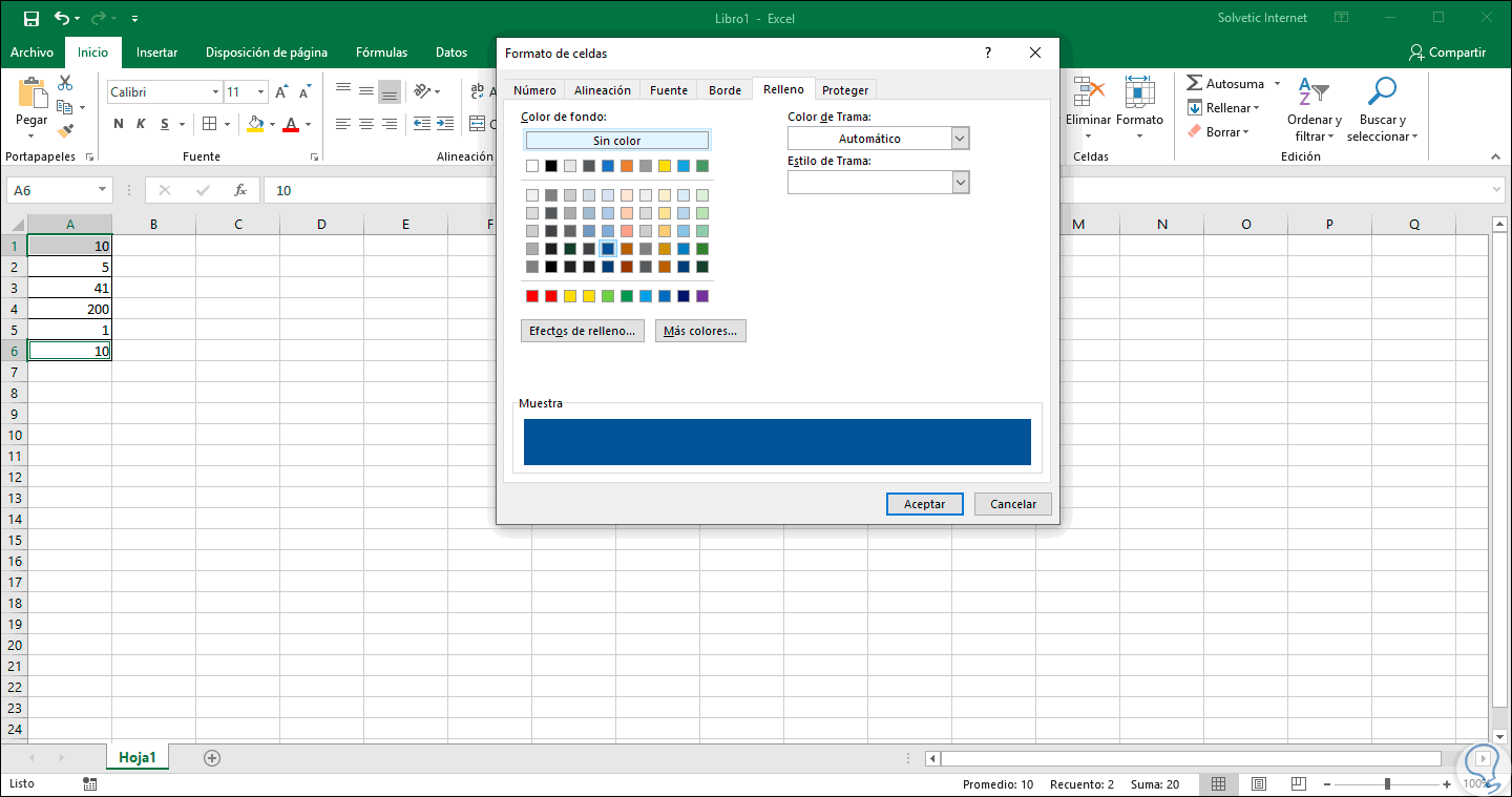 - Podremos cambiar el color de fondo de las celdas según el valor de forma dinámica el cual cambiará cuando cambie el valor de la celda.