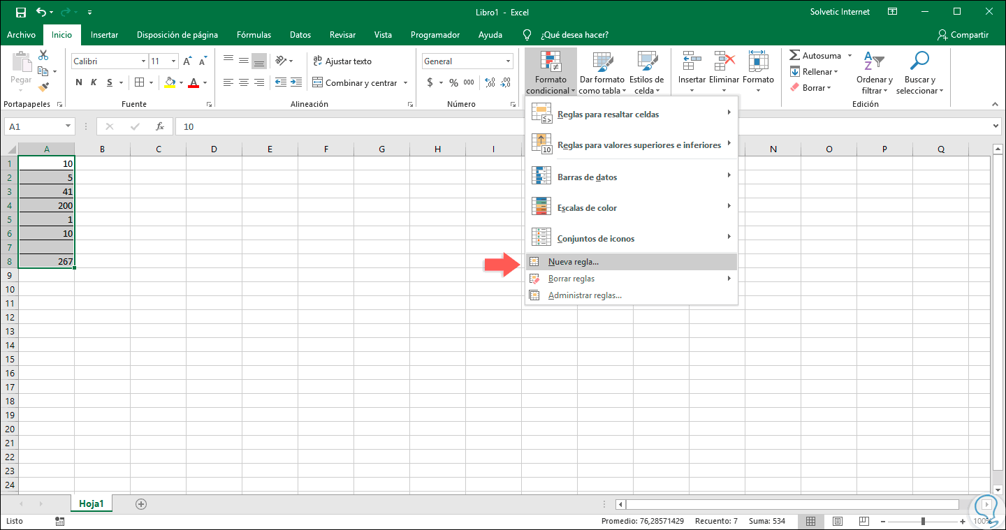 El método que Solvetic te ha explicado anteriormente es el método dinámico ya que si editamos alguno de los valores este será evaluado en base a las reglas definidas. Ahora, si deseamos usar el método estático, es decir, el color de la celda no cambia aun cuando los valores de ésta si lo hagan.