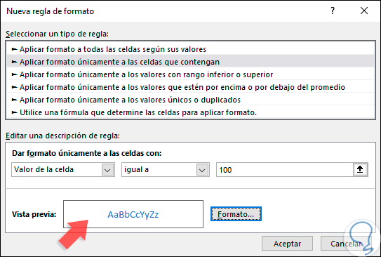 Allí será posible agregar más reglas con nuevas condiciones, editar la regla actual o bien eliminarla, si solamente usaremos esta regla pulsamos en Aplicar y luego en Aceptar para ver los resultados en la hoja de Microsoft Excel: