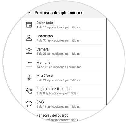 Ahora se puede observar en un menú todos los permisos de aplicaciones existentes en el Huawei P30 Pro, pulsamos en aquel que necesitamos gestionar.