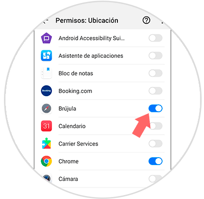 Para continuar, podemos ver en cada permiso todas aquellas aplicaciones que se encuentran habilitadas, por ejemplo: si escogemos Chrome, podemos activar el permiso desplazando la pestaña hacia la derecha, , para desactivarla solo debemos desplazar hacia la izquierda.
