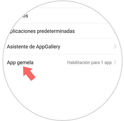 Como veras, entraras a la galería de ajustes de la sección de aplicaciones de tu sistema operativo, en este mismo debes ir a la última opción que ahí aparece y seleccionar “App gemela”.