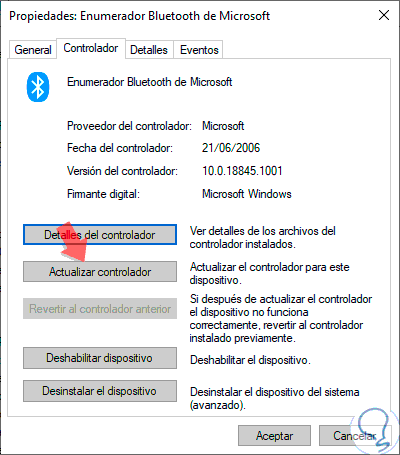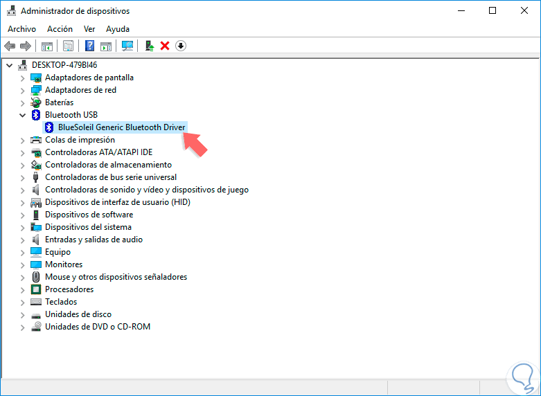 5. Comprobar Bluetooth desde el Administrador de dispositivos en Windows 10