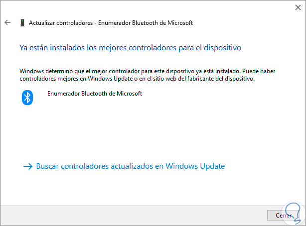 Windows ejecutará la búsqueda global tratando de detectar los controladores actualizados y si hay disponibles los descargará e instalará, de lo contrario dirá que ya estamos con los más actuales: