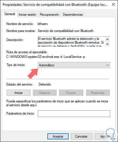En la ventana que será desplegada, iremos al campo “Tipo de inicio” y allí seleccionamos la opción “Automático”: