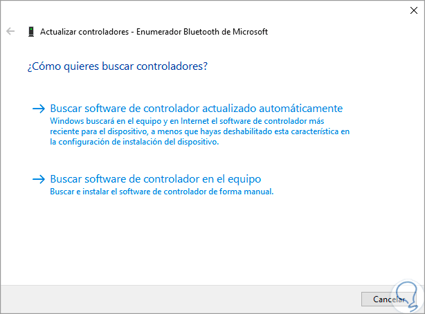 Allí damos clic sobre el botón “Actualizar controlador” y en la siguiente ventana disponemos de dos opciones: