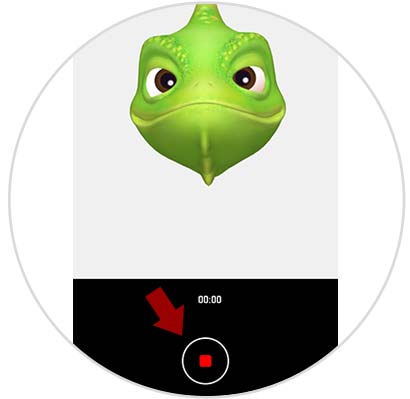 Cuando tengamos seleccionado el qmoji que queremos utilizar y configurados los ajustes de sonido, tenemos que pulsar sobre el símbolo de grabar en rojo en la parte inferior. Una vez pulsado, comenzará el vídeo. Para pararlo debemos pulsar de nuevo en este símbolo.