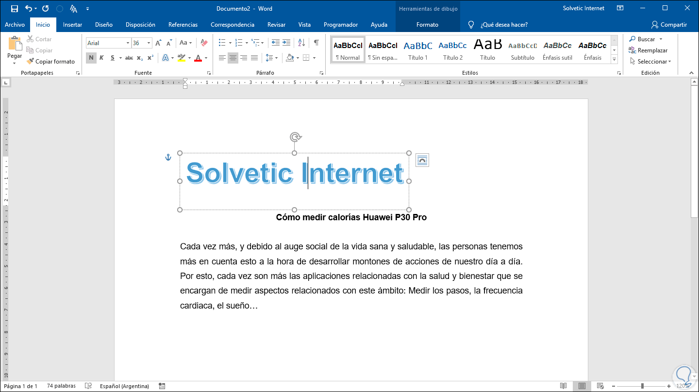 Una de las acciones más simples pero que a la vez ayudará a que el texto tome otra perspectiva es curvando el texto ingresado allí. No importa si es un título o una sección, siempre el estilo curvo dará un toque original y profesional al documento, ¿cómo lo hacemos?, a continuación Solvetic te dará la respuesta que además está incluida en este vídeo.
