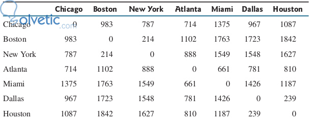 Este es un ejemplo clásico de lo que es una matriz o un array bidimensional, si nos fijamos tenemos dos coordenadas o posiciones relacionadas a las cuales les vamos a asignar un valor, en el caso de la imagen tenemos las distancias en millas de las ciudades, entonces si estamos en Chicago y nos dirigimos a Boston hay una distancia de 983 millas, si vemos cada vez que se cruzan los índices obtenemos el valor, esto nos facilita la vida al momento de construir este tipo de estructura de datos.