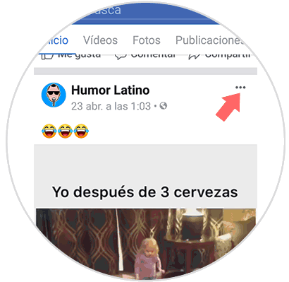 Lo primero que debes hacer es entrar en Facebook y dirigirte al vídeo que quieres compartir. Ahora debes entrar en el vídeo y seleccionar el icono de los tres puntos del vídeo.