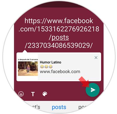 Ahora veremos que el enlace ha sido incluido. Finalmente tenemos que seleccionar el símbolo de "Enviar" para que se publique en nuestro estado.