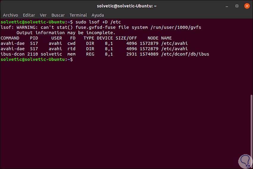 Solvetic siempre te da los mejores consejos para que las labores de información y gestión sean lo más completas posibles y gracias a estas opciones podremos conocer los procesos y archivos abiertos en Linux.