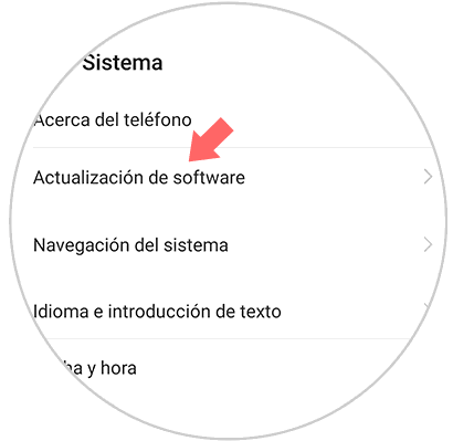 Posteriormente, se muestra una lista de alternativas de las cuales debemos seleccionar “Actualización de software”