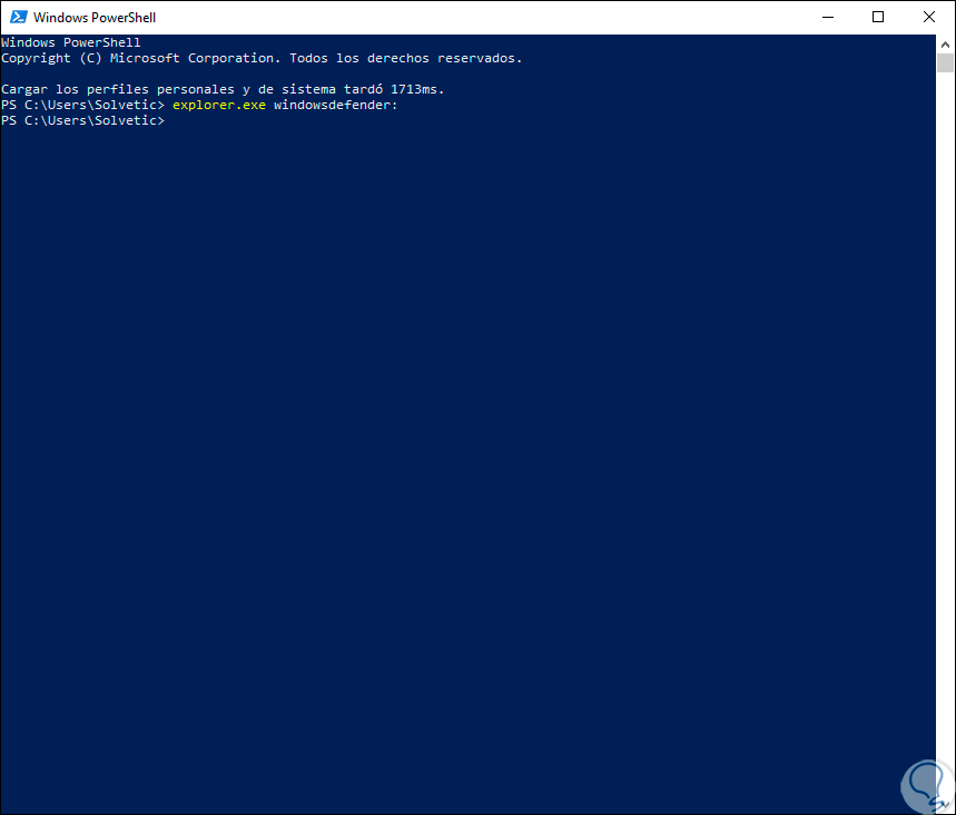 O bien desde la consola de Windows PowerShell. Pulsamos Enter en ambos casos y así iremos a Windows Defender.