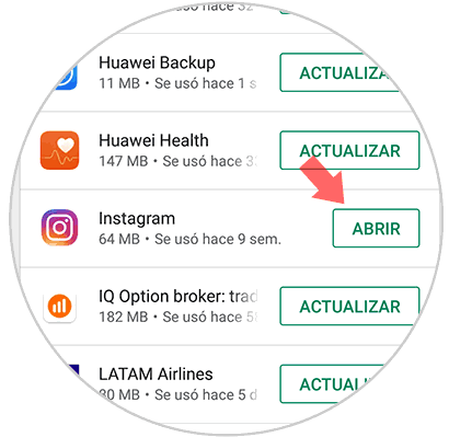 En la siguiente sección ubicaremos la aplicación Instagram y allí validamos si existe alguna actualización disponible: